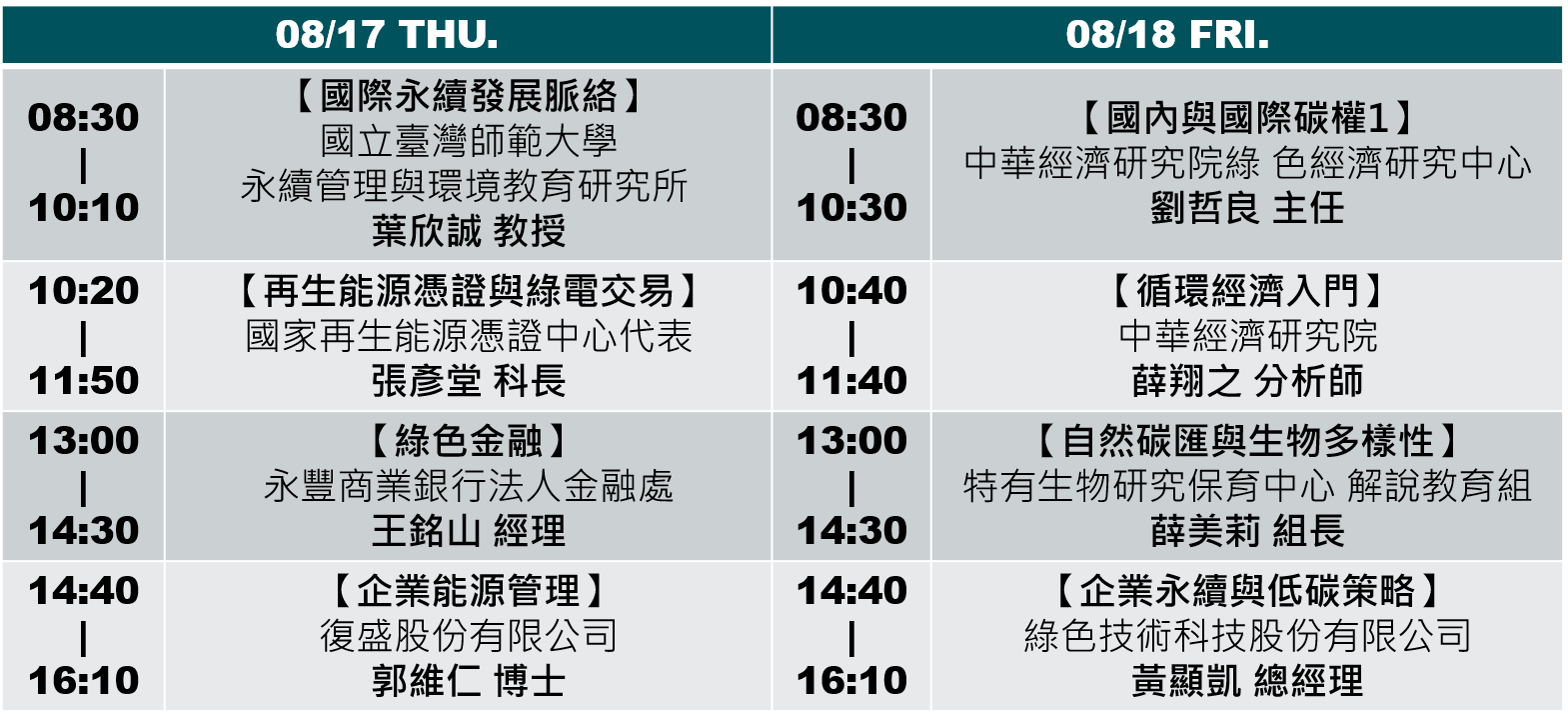 8/17-8/18國家再生能源憑證中心【永續淨零:企業實戰系列課程】啟動班三期-台中場